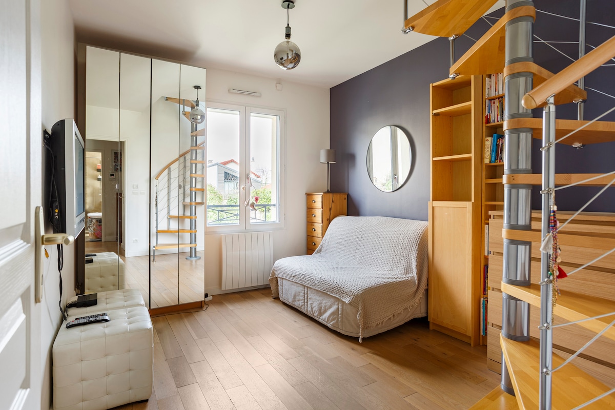 Magnificent old refurbished barn in the back of a small garden. Independent from the main house with separate access. Located in the middle of the village next to the 12th-century church - in absolute peace and quiet (except for the bells). Close to the Château de Versailles, St Germain en Laye, and train stations to reach Paris in 35 minutes. Small shops a few minutes away, restaurants, golf, beautiful nature with walks to enjoy. Hosted by an international couple - open to the world.