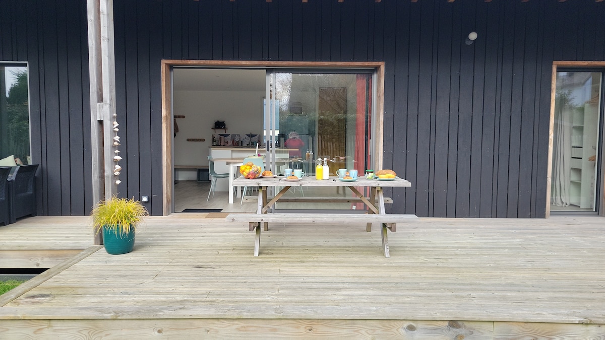 Détendez-vous dans cette maison en bois de plain pied de 60m2 exposée plein sud et disposant d'une grande terrasse propice au repos et aux moments conviviaux . Idéalement située à 250m à pied de la plage de Béniguet mais également près du sentier côtier (GR34), vous pourrez profiter des balades aux abords de l'Aber Benoit. Une épicerie est accessible à pied et un marché a lieu tous les dimanches matins lors de la saison estivale. Vous n'avez plus qu'à poser vos valises et profiter!