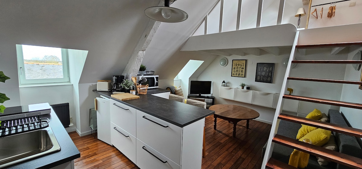 Ce logement unique est situé dans une rue calme à proximité immédiate du centre-ville historique de Dol de Bretagne. Il s'agit d'une ancienne ébénisterie entièrement rénovée avec d'excellente prestation. Le Mont Saint-Michel, Saint Malo, Cancale, Dinard et Dinan se trouve à environ 20 minutes de cette petite ville pittoresque. Vous apprécierez les commerces dans la rue principale, le marché diversifié du samedi matin et la vue imprenable du Mont-Dol sur la baie du Mont Saint-Michel.