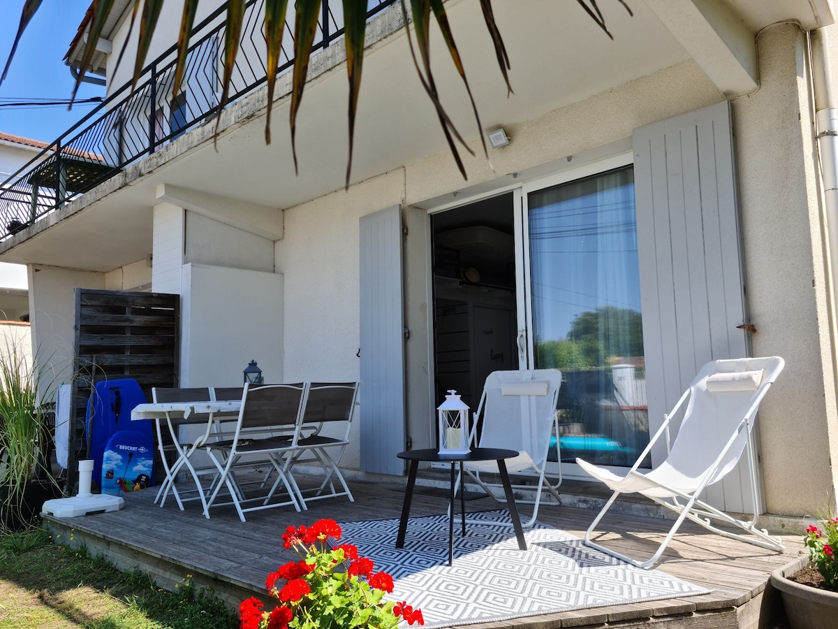 APPARTEMENT PLEIN PIED FACE MER ET PHARE DE CORDOUAN classé 2 étoiles Agréable appartement de 35m² avec jardinet et terrasse couverte dans une résidence calme en bord de mer. Vous disposerez d’un séjour avec clic-clac de 140 , d’un espace repas avec son coin cuisine équipée, d’une chambre avec lit de 140 et son armoire de rangement, d’une salle de bain et d’un wc séparé . Equipement bébé à disposition (lit et chaise haute) Parking privatif et local à vélo fermé.
