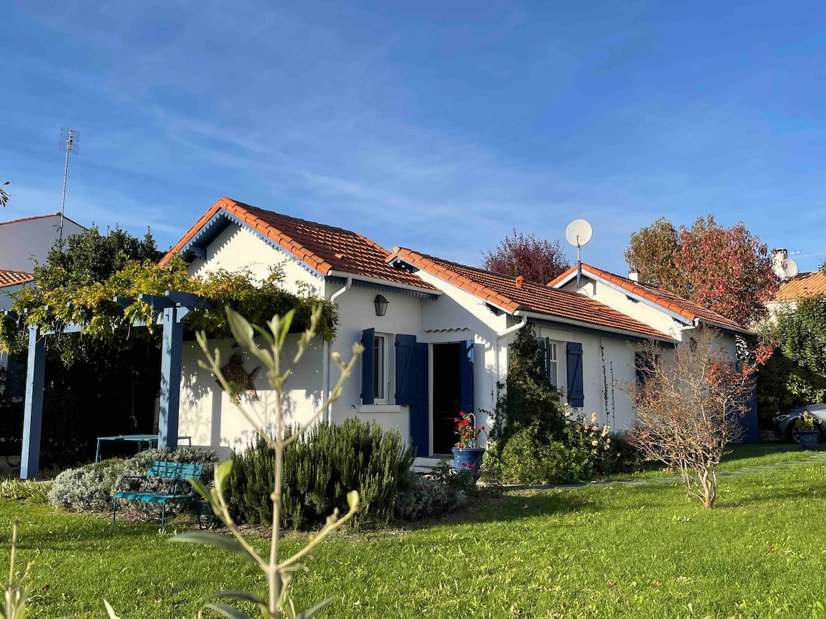 Villa "Anouste Royan", quartier calme et résidentiel de Royan, à 600m de la plage, des commerces et du centre ville. Tout confort. Literie de qualité. Jardin - terrasse - Wifi - Tortues extérieures -Télétravail Sur rdc et étage, 3 chambres + 1 traversante, 2 salles d'eau avec wc (baignoire et douche), cuisine,salon. Proche du centre ville, de la plage de Royan, de la gare. Pas besoin de voiture. Télétravail possible. Idéal en famille. Maison moderne et confortable . Disponible toute l'année
