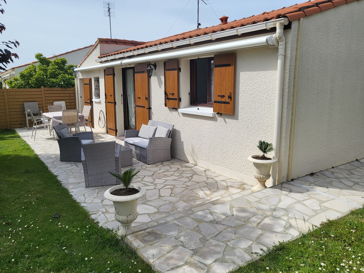Maison très bien située, 70m2,de plain pied, située à 150 m du centre-ville, du port (location jetski, promenade en bateau ....) à 150 m de la plage de Foncillon , 100 m d’un parc avec jeux pour enfants et à 400 m du centre de Thalasso , 900 m du Casino de Pontaillac ,arrêt de bus à 50m (ligne desservant la gare, Zoo de La Palmyre), quartier calme. WIFI Jardin clos de 200 m² avec salon de jardin et barbecue. Petit garage pour 2 roues,vélos... Meublé touristique classé.
