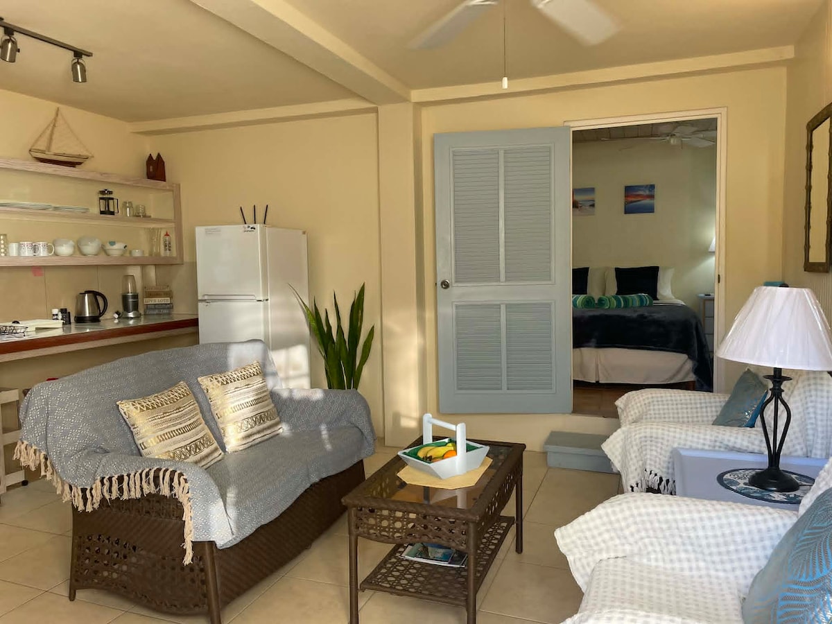 This beautifully decorated studio apartment is a stones throw from the beaches, marinas, restaurants and night life or English and Falmouth Harbour. However, it lies at the end of a quiet road, which over looks the world Heritage Site of Nelson's dockyard. The water is right at the foot of our driveway.