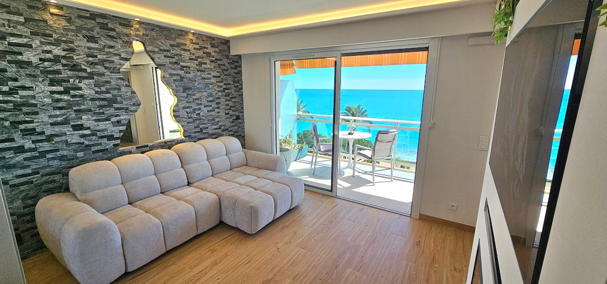 Das außergewöhnliche Apartment befindet sich im 4. Stock eines Mehrfamilienhauses an der Promenade des Anglais, d.h. nur wenige Schritte vom Strand entfernt. Die Wohnung verfügt über ein großes Wohn-/Esszimmer mit einer offenen Küche sowie 2 Schlafzimmer, 2 Bäder und eine große Terrasse. Die Einrichtung ist stilvoll-lässig. Der großzügige Balkon ist auf das Meer ausgerichtet und hat (fast) den ganzen Tag Sonne. Zum Stadtzentrum sind es 15 Minuten zu Fuß oder 5 Minuten mit der Straßenbahn.