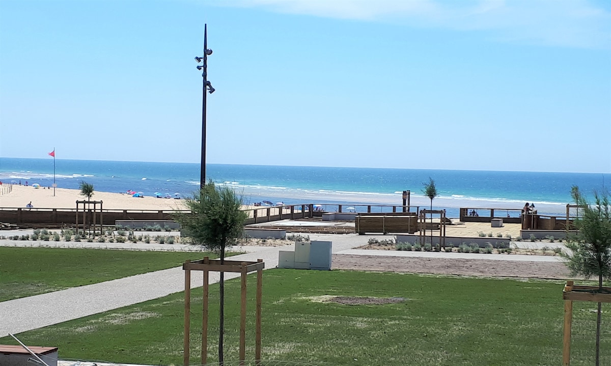 Appartement vue sur dune, au 1er étage, avec emplacement privé pour la voiture, très calme, tout confort, décoration soignée, 1 chambre (lit 140) 1 grande mezzanine avec 1 lit 140, 2 lits 90, terrasse couverte avec coin repas, à 40 mètres de la plage surveillée, à 200 m des premiers commerces, à 500 m des restaurants, du marché, du super-marché, de la rue piétonne, proche des pistes cyclables etc.
