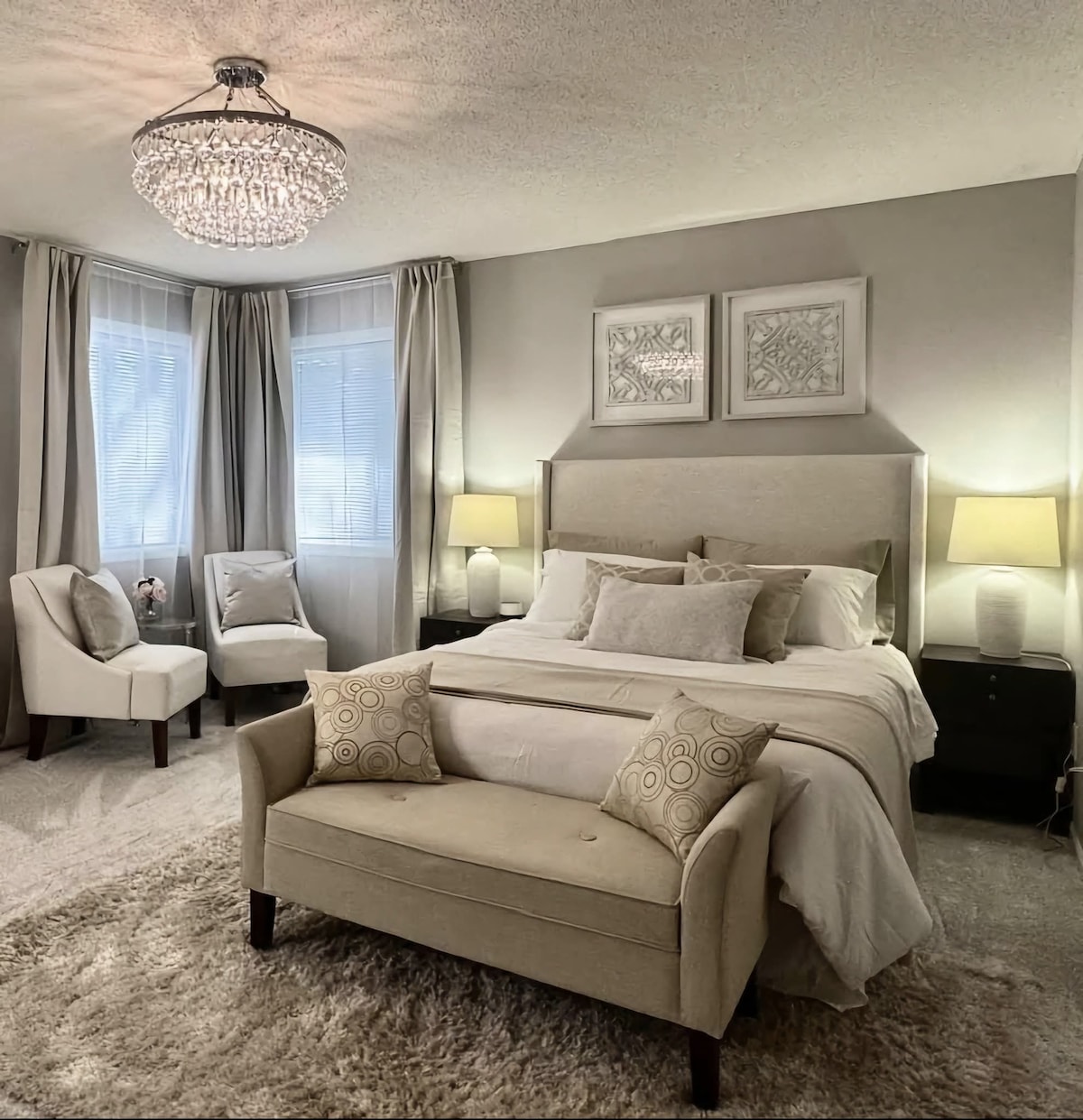 Welcome to your modern luxury getaway, a spacious 3BR/2.5BA home with an open concept layout perfect for families or business travelers. Enjoy a home theater, fully stocked kitchen, master ensuite with large walk-in closet, and free washer & dryer conveniently located upstairs with all bedrooms. Convenient parking in the 2.5 car garage adds ease during your stay. Just minutes from parks, lakes, shopping, and only 15-20 minutes to downtown Minneapolis & St. Paul, your ideal Twin Cities home base!