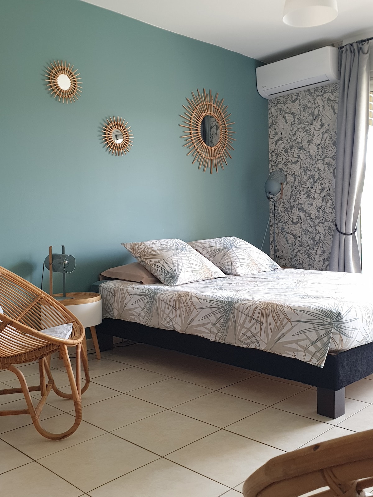 T2 jardin refait à neuf à 200m du lagon, il permet d'accueillir de 2 à 4 personnes. idéal pour un couple avec 2 enfants. L'appartement est entièrement climatisé connexion WIFI/TV 1 varangue spacieuse avec un agréable extérieur avec coin repas/apéro et jardinet. Cuisine entièrement équipée, frigo américain, four et micro onde, cafetière, lave vaisselle) 1 chambre avec un lit double 140/ 190cm, possibilité de fournir le matériel de puériculture (lit BB, chaise haute, porte bébé rando)