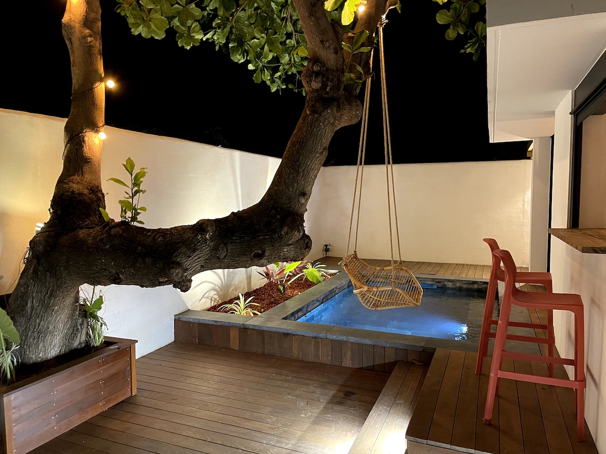 迷人的空调平房,带按摩浴缸露台