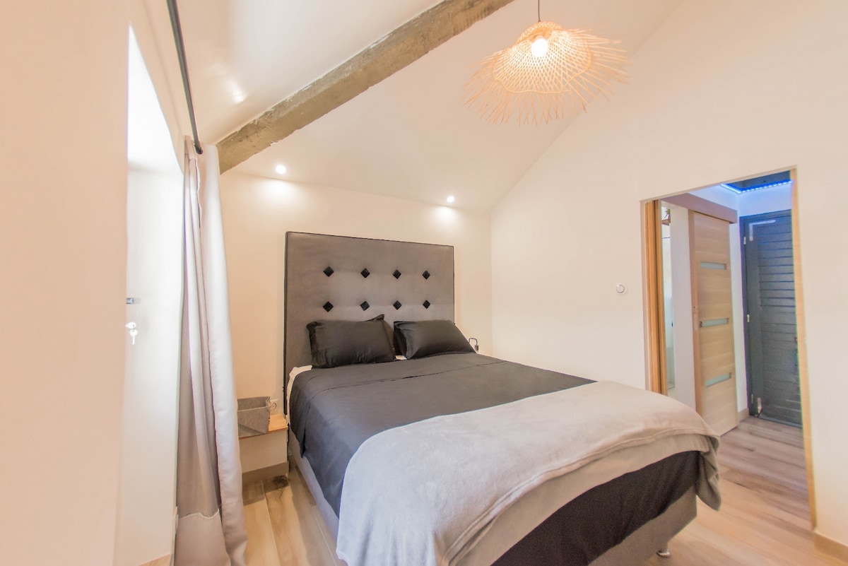 Logement proche de la plage accessible à pieds, equipé d'un jacuzzi privatif avec vue mer et montagne depuis le jacuzzi. Il est au premier étage. Profitez d'une situation exceptionnelle proche du lagon. Fêtes interdites. Le jacuzzi est accessible à toute heure, cependant les buses de massages sont programmées jusqu’à 21h et reprennent à 8h. TARIF DÉGRESSIF SELON DURÉE