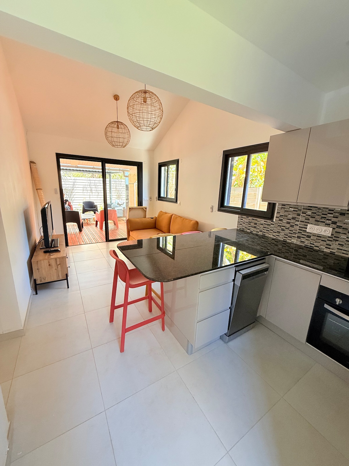 Bonjour, et bienvenue chez nous! Détendez-vous dans ce Ti-lodge récent et élégant situé dans un quartier calme. Depuis la terrasse ou votre lit, vous aurez une vue sans vis-à-vis et dégagée sur la nature. Le logement, construit sur notre terrain à côté de notre maison, est situé sur le littoral de Trois Bassins entre les villes de St Leu et de La Saline-les-bains. Nous sommes à 120m d’altitude, il vous sera donc possible de manger (et de vous doucher😀) dehors toute l'année.