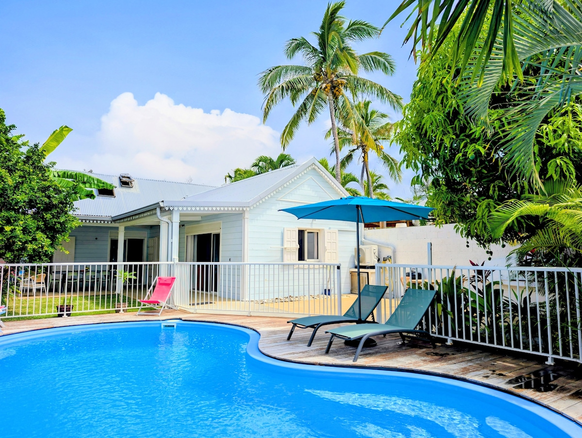 Case en bois de charme « RETOUR DE PLAGE » est située, à 150 m du Lagon sur la plus belle partie de plage pour snorkelling et activités nautiques Des patates de corail magnifiques et poissons tropicaux vous raviront dans cette zone très préservée . Proche des axes principaux pour partir découvrir notre belle île… Vous pourrez vous reposer ensuite au bord de la piscine sous les cocotiers au calme Accès plage lagon direct Lieu très recherché pour des vacances de rêve
