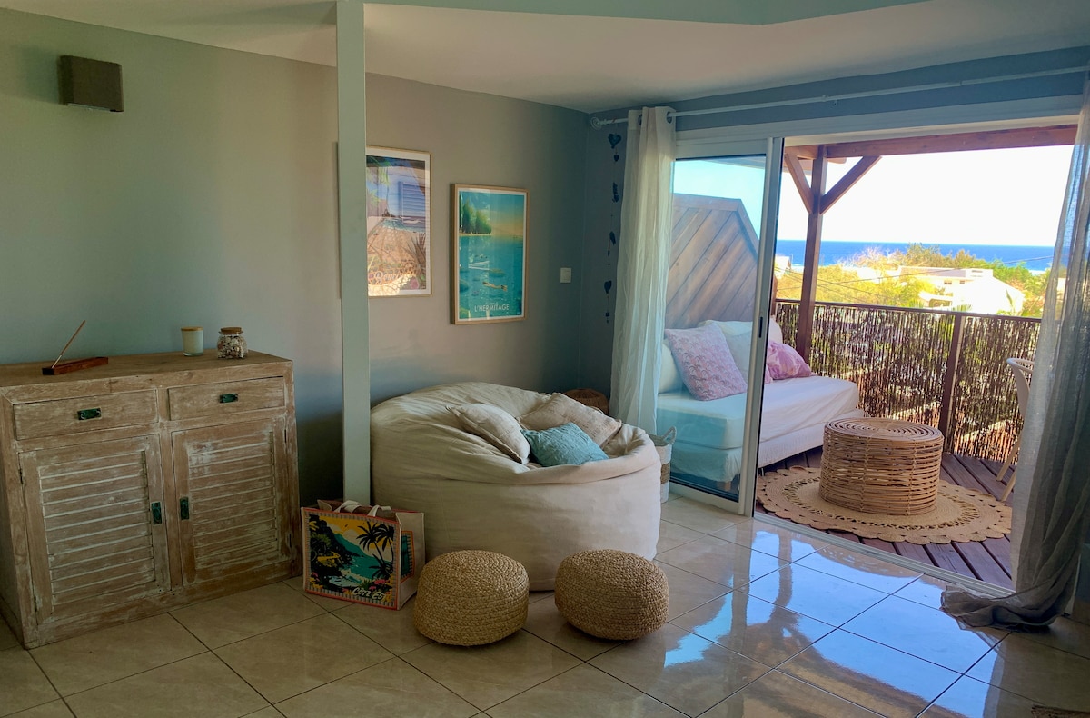 Ce logement neuf est unique. Situé dans le sud de l'île. Juste au dessus de la plage de Grande Anse. Avec une vue à couper le souffle. Cette villa luxueuse a été décorée avec soin par son architecte. Vous serez bercés par le bruit des vagues. 120m² avec trois chambres climatisées, 2 salles de bain, un espace de vie de 40m² et une magnifique varangue de 20m. Jardin de 260m² et sa piscine chauffée avec vue sur l'océan. Et le petit plus pour un moment de jeux entre amis : le terrain de pétanque 🤩