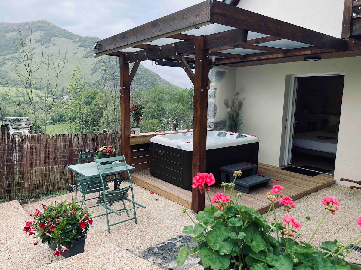 带水疗和比利牛斯山景观的舒适度假屋