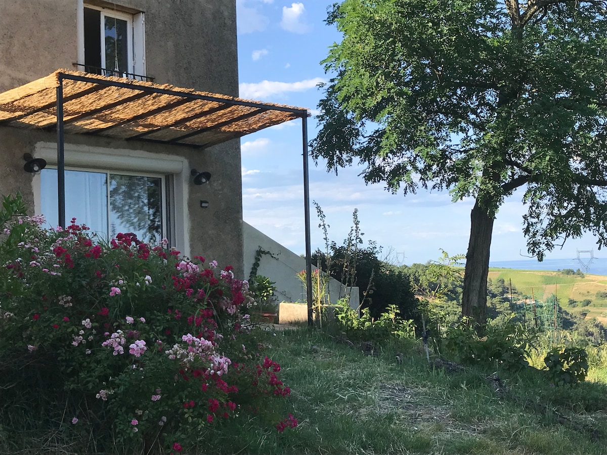 Studio avec vue sur le Vercors, à 15 min de la vallée, terrasse privée, entrée privée, climatisation, TNT, kitchenette équipée, lit king size 180 cm, sur les hauteurs de Saint Péray, à 15 min. du centre, 25 min. de Valence; le studio est au premier étage de notre maison et complètement indépendant