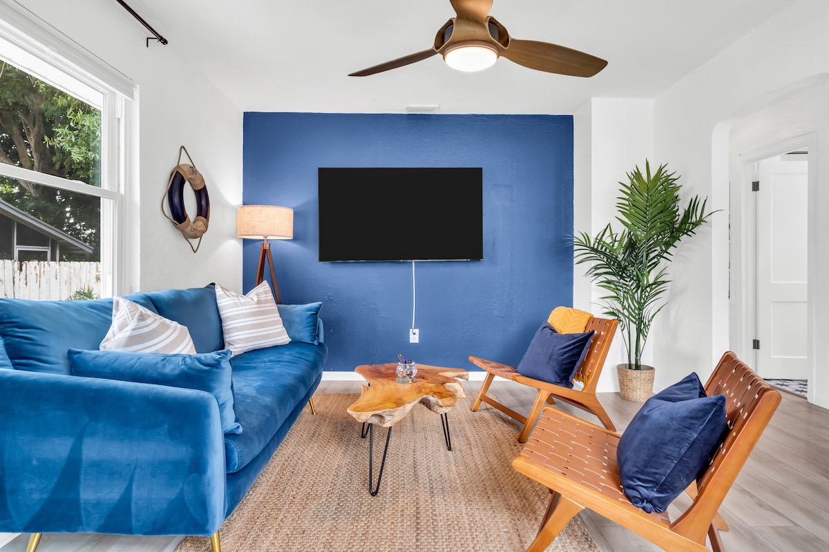 Welcome to The Driftwood's nautical retreat. This cozy 2-bedroom home is a haven of maritime-inspired style, offering a unique and refreshing escape for your stay. Unwind in your private yard with a fire or dinner at the outdoor dining area. Have your pet staying with you? They are welcome here! This beautiful diverse neighborhood is one mile away from Gulfport's beach blvd. where you can shop, dine, or stroll the beach. 6 miles away will take you to the famous St Pete Beach or St Pete Pier.