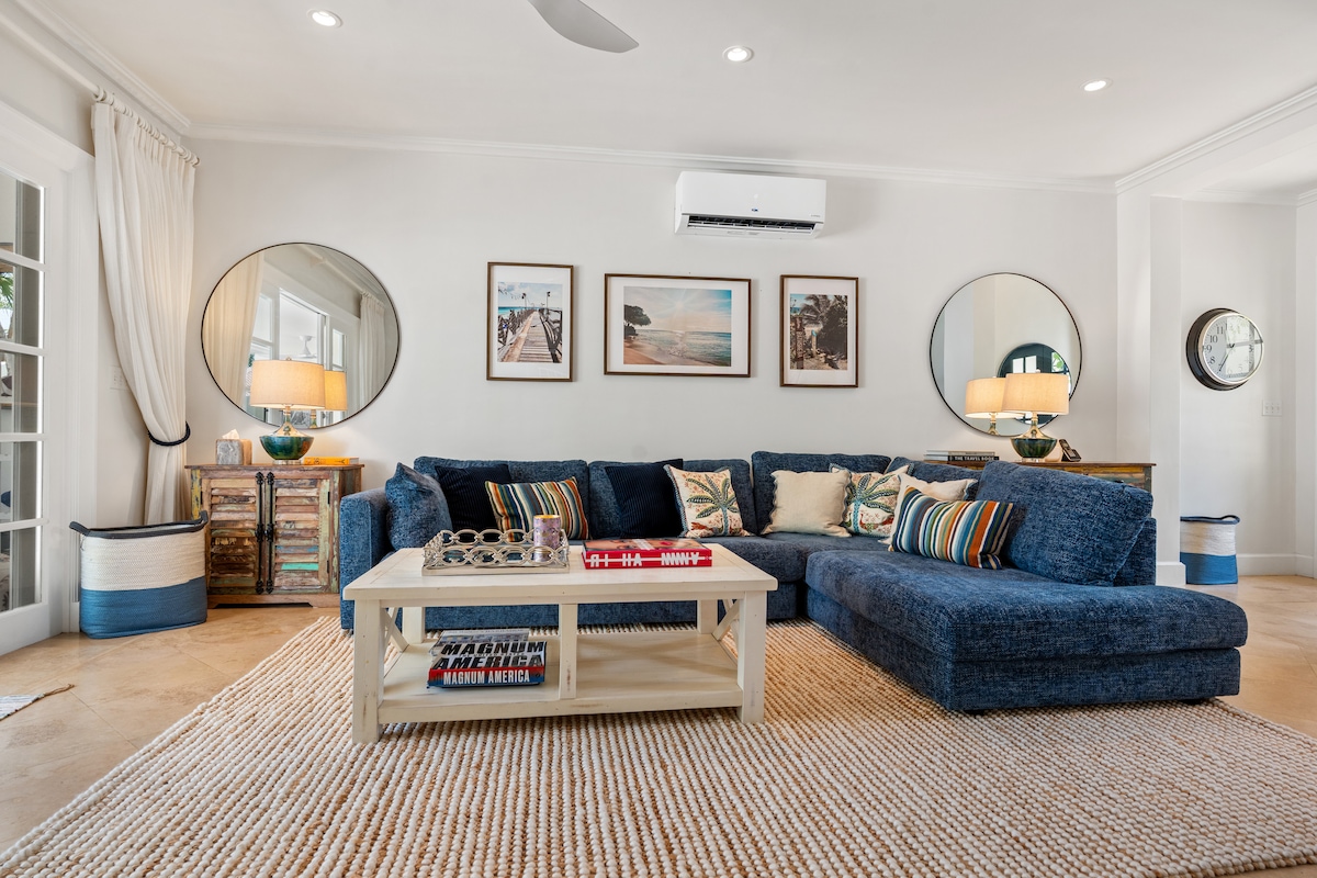 Fabulous, contemporary 3 bed 3 bath home with large garden and the best view of the Caribbean. Enjoy sundowners on the patio with an endless view of the Caribbean. This indoor/outdoor home was built to catch the cooling breeze. Recently updated, all bedrooms have A/C. The vaulted kitchen opens to the outdoor dining area and features high quality appliances and cookware. Located in a quiet location minutes from The Fish Pot. Ideal for families.