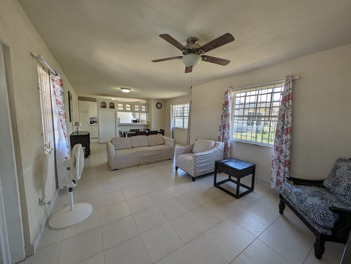 Forget your worries in this spacious and serene space. 2-bed apartment with easy access to public transport but access to a car is recommended for more extensive sight-seeing (speak to host for assistance in arranging if needed). One mile away from Bottom Bay beach and two miles from Ragged Point Lighthouse which is noted for the best view along the Atlantic side of island. It is also a ten-minute drive from amenities in Six Roads.
