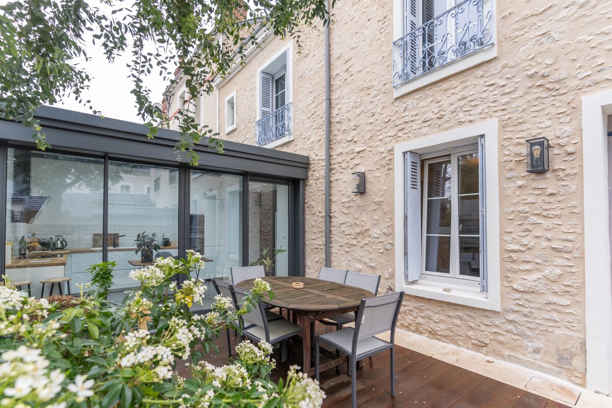Grande maison de ville lumineuse de 170 m2, avec terrasse en bois et jardin plein sud. Dans une rue calme, à proximité du parc des Prébendes et à 15 min à pied du vieux Tours. L’entrée se fait par un porche où il est possible de garer des vélos. Rez-de-chaussée: grand séjour-salle à manger avec une cheminée insert et cuisine ouverte. Premier étage: 4 chambres, salle de bain et salle de douche attenante à une chambre. Deuxième étage: grande suite parentale avec bureau et salle de douche ouverte.