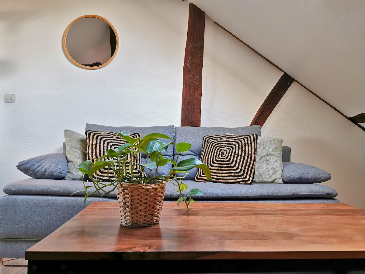 Appartement 2 pièces sous les toits avec poutres apparentes, alliant charme ancien et modernité, situé au 3ᵉ étage (sans ascenseur), proche du centre-ville de Tours. Idéal pour un séjour touristique ou professionnel. 📍À 5min du centre en tramway, 15/20min à pied, 10min en voiture. 🚋 Arrêt de tram juste en bas. 🔐 Arrivée autonome via boîte à clés sécurisée. ⏰ Arrivée à partir de 18h – Départ jusqu’à 11h. Des options d’arrivée anticipée ou de départ tardif sont disponibles (en supplément).