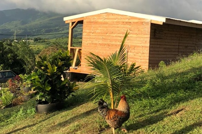bungalow tout en bois de 44m sans aucun vis à vis, implanté dans un grand jardin planté de fruitiers,vue mer et montagne pelée.C'est l'unique bien à loué sur ce grand terrain et vous serez comme un peu seul au monde, Idéal pour ceux et celles qui veulent de l'intimité, qui aiment la nature et la vie au grand air,vous serez à coté des plus belles randonnées de l'île.