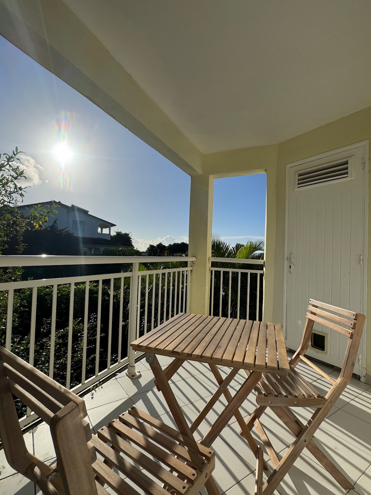 Situé sur les hauteurs du Carbet à 5 minutes de la plage, Kay Lucile vous offre un cadre paisible et ventilé, parfait pour un séjour en famille ou entre amis. Entièrement refait à neuf en 2025, cet appartement allie confort moderne et charme authentique. Depuis sa terrasse couverte privative, profitez d’une vue imprenable sur la mer et les couchers de soleil, un cocktail à main. Un cocon parfait pour se détendre !