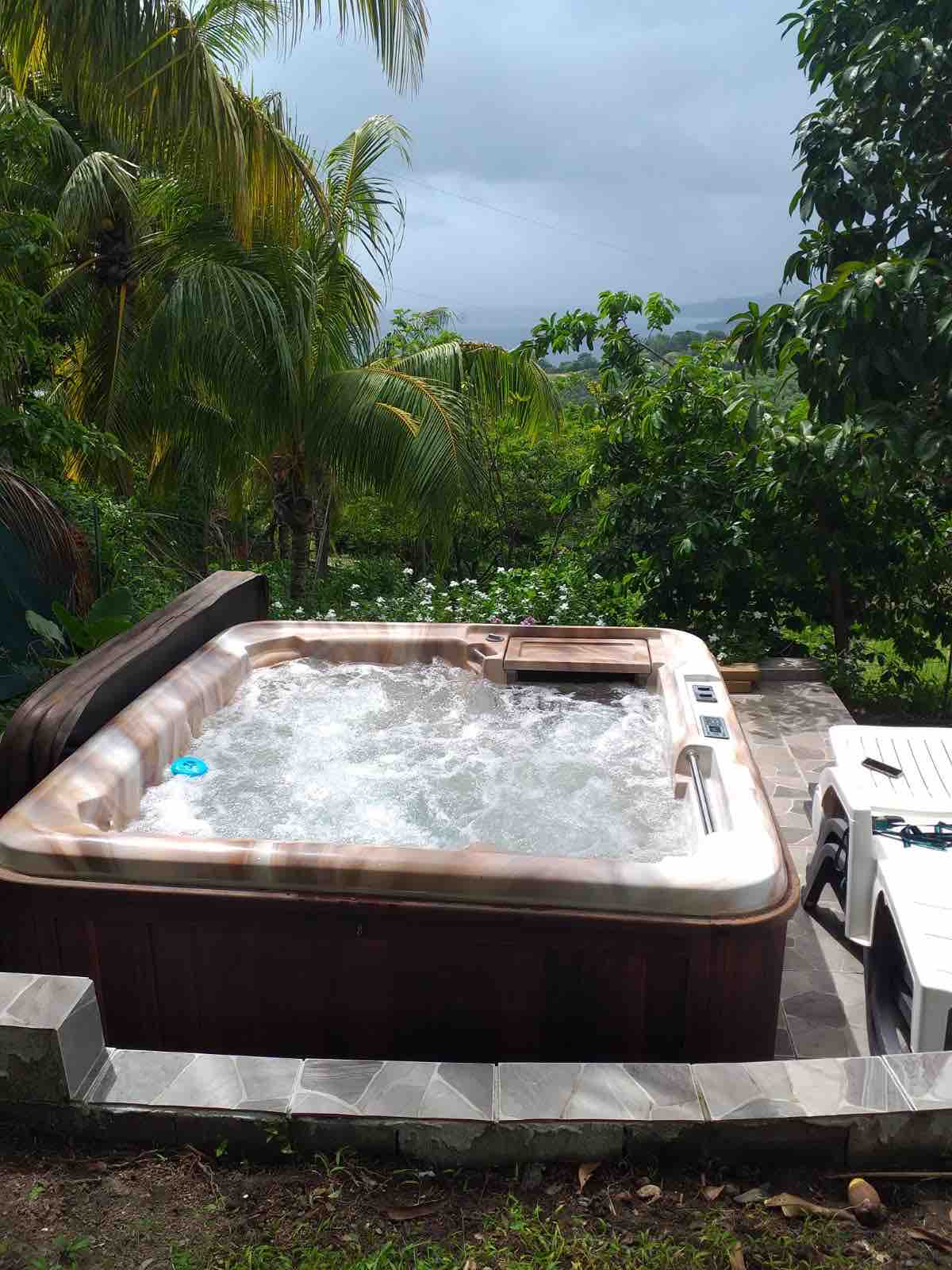 Dans une magnifique propriété de 7 500 m2 avec jacuzzi, ce logement paisible de 85 m2 avec 2 chambres ayant chacune sa salle de bain privative, offre détente et tranquillité en famille ou entre amis. Situé au pied de la Montagne Pelée, vous pourrez aisément découvrir les communes du Nord Caraïbes, les mythiques et sublimes plages de sable noir, des rivières et cascades de la Région. Idéal pour les randonneurs qui souhaitent découvrir les sentiers de la forêt tropicale martiniquaise.