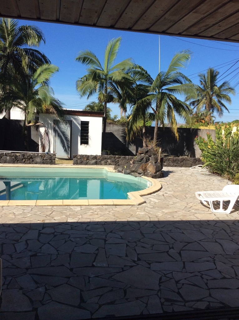 Notre maison est au 2 rue des Trois Mares, près de l’Hôtel le Vieux Cep Cet appartement est situé à l’étage de notre maison principale : même portail mais entrée séparée Vue sur le Piton des Neiges de la chambre puisque les 4 petites fenêtres que vous voyez sur la 2° photo sont celles de la chambre grande chambre équipée d’un grand lit de 160 séjour avec télé et coin cuisine bien équipé grande salle de bain avec baignoire La terrasse est exposée au Soleil levant Wifi canal satellite
