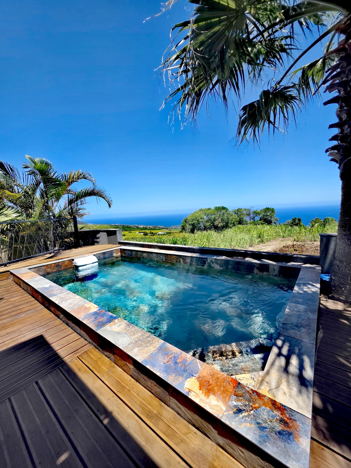 Lodge en bord de mer. Au bord d’une petite falaise, face à l’océan et aux roches volcaniques, venez découvrir ce petit coin de paradis. Conçu comme une suite d'hôtel de charme, il est idéalement adapté aux séjours en couple, avec ou sans enfants. Pour vos enfants, une mezzanine aménagée avec lit de 160 qui les attend. Jacuzzi en pierre, chauffé, face à l'océan indien. Et pour les chanceux de début juin à la mi-octobre, vous pourrez admirer du lodge les baleines.