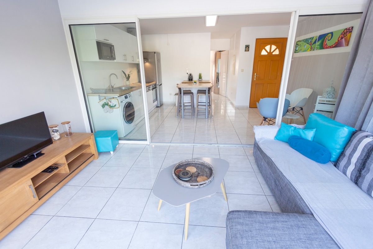 appartement entier de 50 m2 : très AGRÉABLE T2 MODERNE ET COSY pour 2 à 4 personnes (idéal pour une famille ou 3 adultes) ,varangue couverte …aux Portes du Lagon de St Pierre ... situation idéale PLAGE/MER /VILLE /MONTAGNE /VISITES.... A coté du fameux MARCHÉ du samedi matin de ST Pierre , de la plage, des commerces, du port, de la vie nocturne ...piste cyclable, Beach-volley, kitesurf... , facile d’ accès pour aller dans le Sud Sauvage et au Volcan TOUT CONFORT/ WIFI