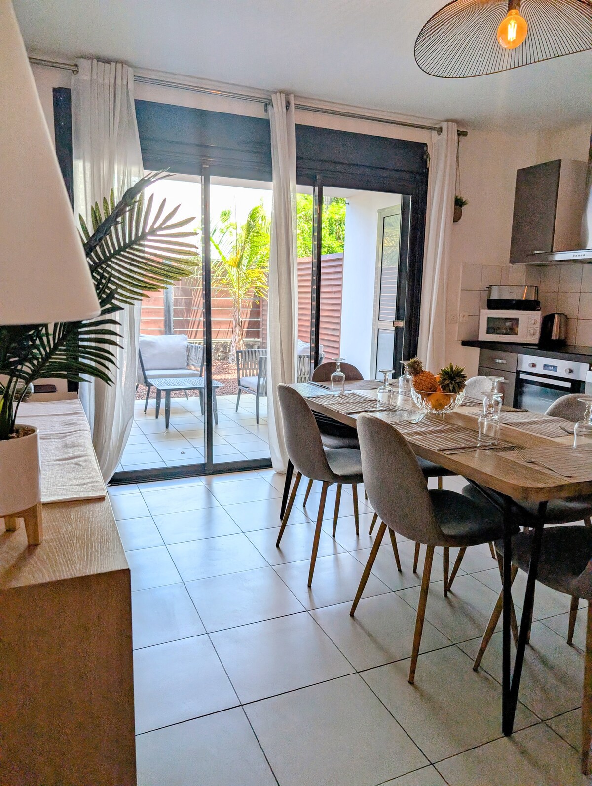 Idéal pour les familles, amis ou couples, cet appartement privatif confortable accueille jusqu’à 5 personnes (+1 bébé) dans un cadre paisible. T3 entièrement à vous: 2 chambres. Cuisine équipée pour vos repas maison. Salon avec canapé-lit et TV. Salle de bain moderne (douche à l’italienne). Toilettes intérieure et extérieure. Wi-Fi gratuit. Les plus : Parking dans la cour de la location, équipement bébé (lit parapluie). Parfait pour se détendre ou explorer le sud de La Réunion.