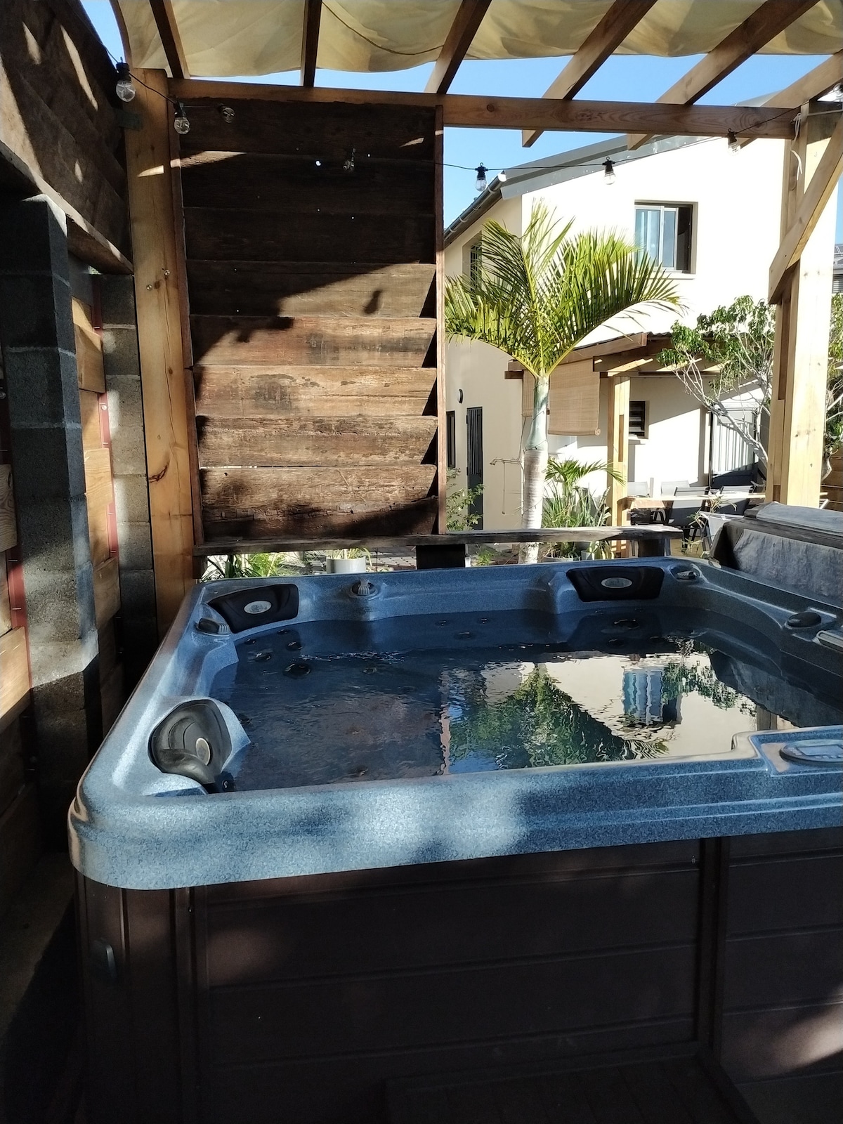 Etwas oberhalb von Etang-Salé, zwischen Zuckerrohrfeldern und kreolischen Nachbarn, liegt dieses neue Haus im marokkanischen und balinesischen Stil. Vom großen Pool über einen tropischen Garten mit mehr als 10 verschiedenen Palmen und mehreren Sonnenterrassen bis hin zur hochwertigen Einbauküche ist alles vorhanden, was den Urlaub angenehm macht. Nach 30 Jahren Großstadtleben am Berliner Kurfürstendamm haben wir hier einen Ort für alle Sinne geschaffen.