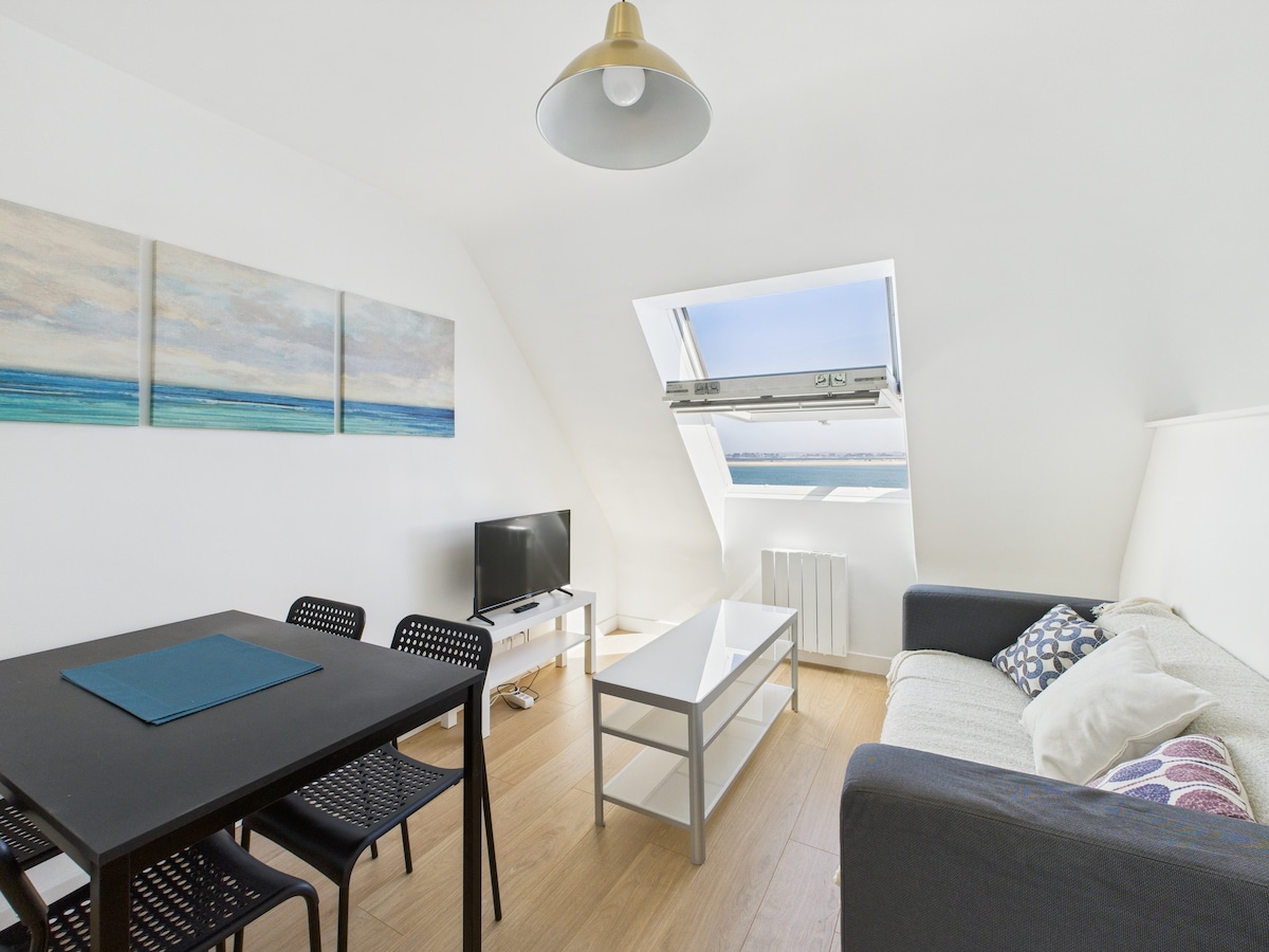 Dans un appartement situé au 1er et dernier étage d'une petite résidence très calme, vous profiterez de la plage et de la vue sur la baie de Roscoff. Appartement de 54 m² comprenant : pièce à vivre (cuisine équipée, canapé convertible 140), chambre (lit de 160), WC, salle de douche, loggia. Parking privé, box pour vélos, wifi. L'été, navette gratuite vers le centre-ville (église 1.5km - thalasso 800m) A visiter : Ile de Batz, Baie de Morlaix, Carantec, Finistère Nord, surf au Dossen (7km).