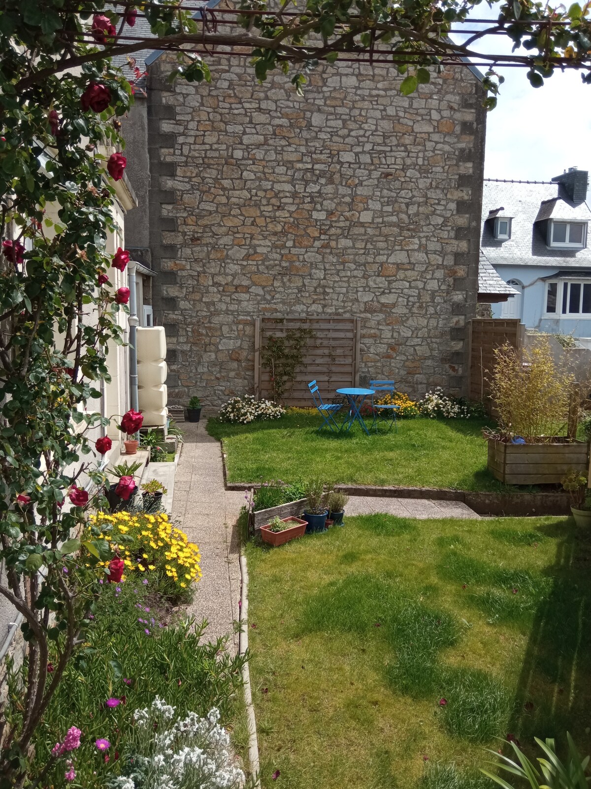Que vous fassiez 150 m à gauche ou à droite en sortant de la maison, vous rejoindrez la promenade du littoral, la thalasso, le vieux port ou le centre ville de Roscoff. De l'étage, vous verrez l'Ile de Batz. C'est une maison de centre ville avec un petit jardin clos de murs, plein sud. Vous bénéficierez d'une plage surveillée en période estivale, à 500 m. Vous pourrez vous baigner sur une crique à 150 m, à gauche ou à droite !