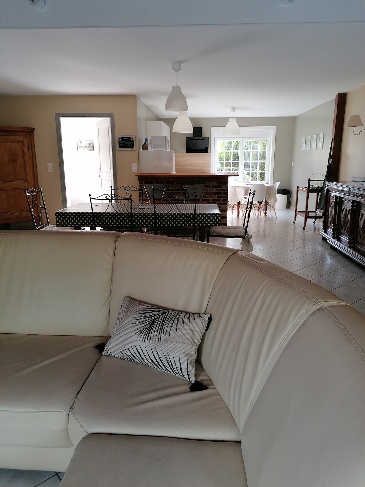 Maison lumineuse à la campagne dans une ancienne ferme carrée avec de grands espaces verts et arborés à 2 minutes du Cateau-Cambrésis. 3 chambres, grand séjour avec cuisine ouverte toute équipée (induction, Nespresso,lave-vaisselle, cave à vin) Chambre 1: 1 lit 200x180 Chambre 2: 1 lit 140x180 Chambre 3: 1 lit 90x180 Matériel bébé à disposition (lit parapluie, chaise haute, baignoire) Draps et linges de maison fournis Lave-linge et sèche-linge Terrasse et barbecue au gaz Coin bureau disponible