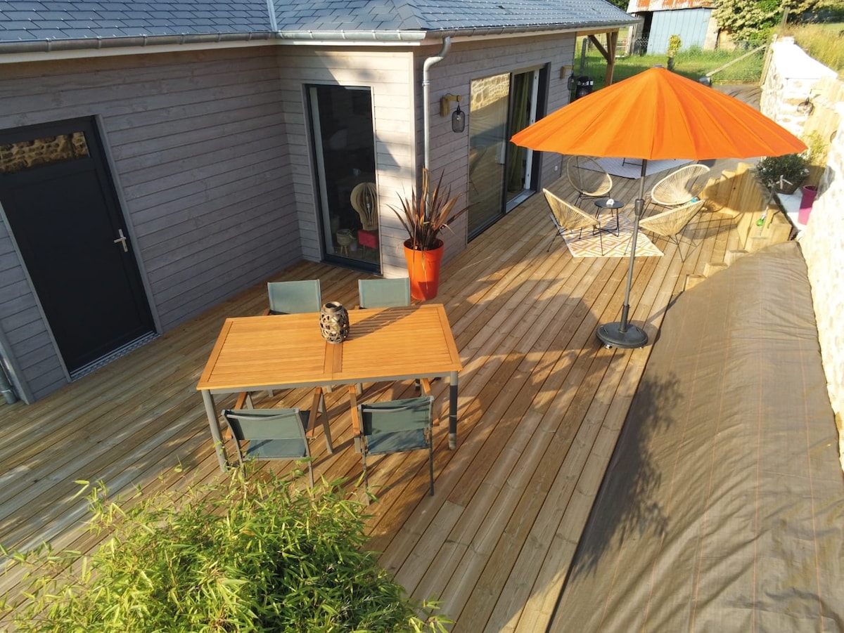 A la frontière de la Normandie et de la Bretagne et à 15min du Mont Saint Michel, en famille ou entre amis, ce gîte de 120m² avec jardin peut accueillir jusqu'à 8 personnes. Il se compose d'un double séjour : salon/ TV et une salle à manger avec cuisine ouverte ( 60m² ) A l'étage, 3 grandes chambres et une salle de bains familiale Toilettes au rez-de-chaussée et à l'étage Espace extérieur de 80m² comprenant grande terrasse avec table et 8 chaises + barbecue à disposition et jardin clos