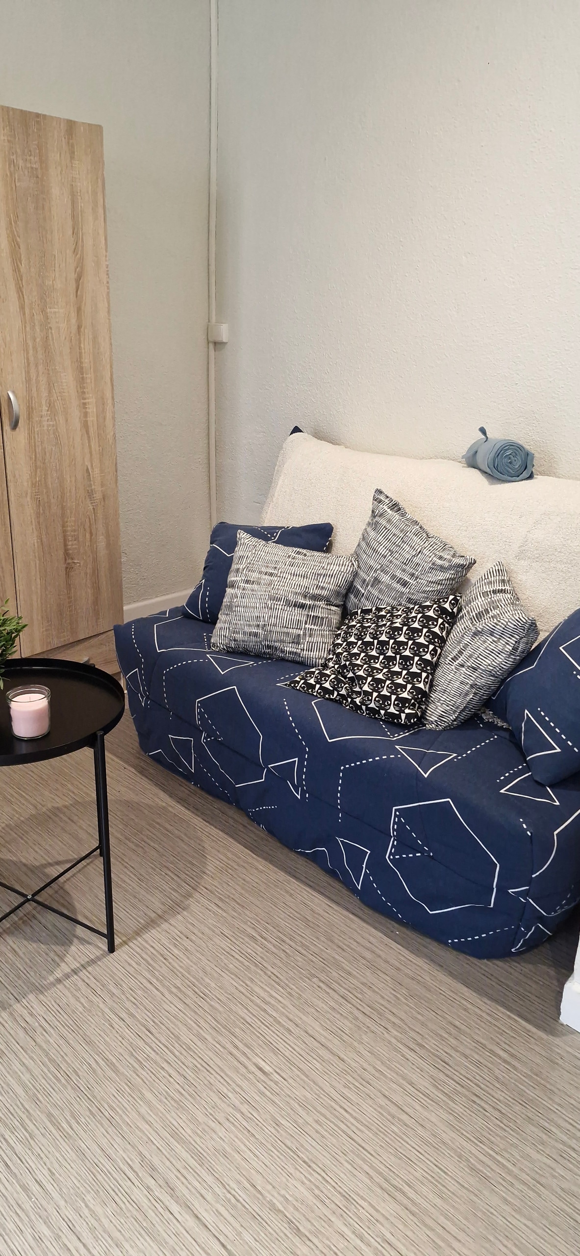 Profitez d'un logement élégant et neuf classé 1*. Le studio est situé au fond d’une impasse à deux pas du centre ville, proche des divers accès. Il est composé d'un Clic-Clac de 140x200 avec un matelas confortable et dispose d'une salle d'eau avec une petite douche. Les draps et serviettes sont fournis. Un parking gratuit de proximité est à votre disposition pour faciliter vos déplacements et stationnements quotidiens. Pour tout renseignement, n’hésitez pas à me contacter.