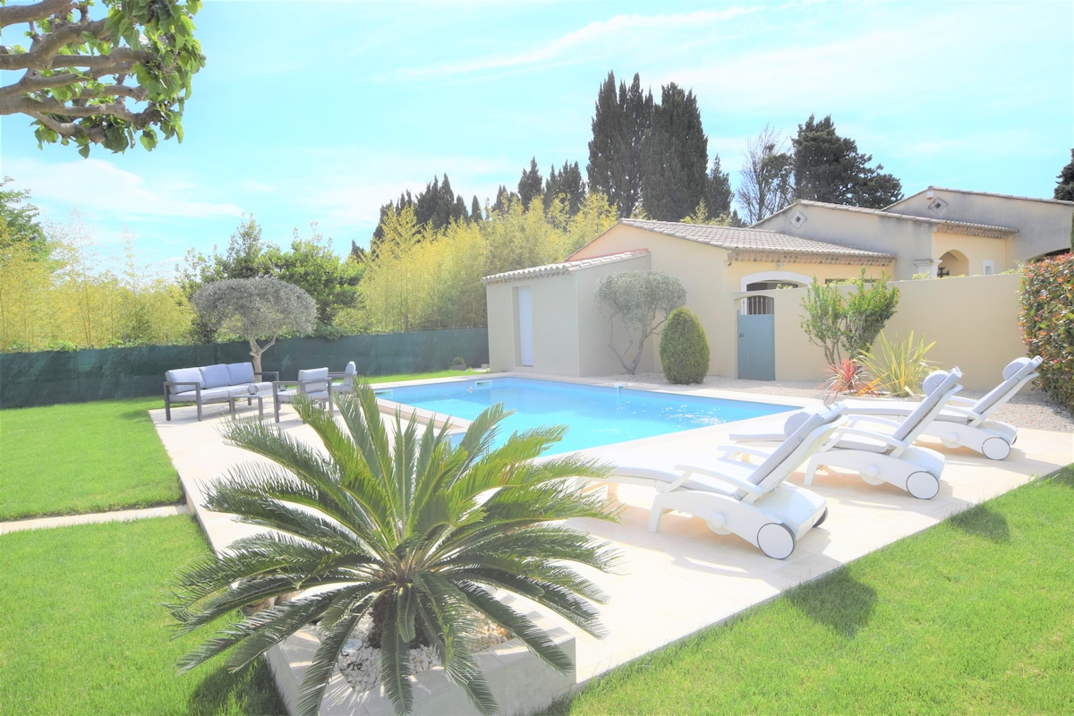 Welcome in Provence! Perfect for 2 persons (eventually 3), a nicely independent apartment in a renovated Provencal farmhouse with a bedroom and it's king size bed (180x200), a bathroom with walk-in shower, a living room with lounge including an open plan kitchen fully equipped and a 3rd possible accomodation on the mezzanine. Enjoy the shaded terrace, the wonderful garden with the 13m x 4m new swimming pool and the petanque ground. Some bicylces and a tennis table are available as well.