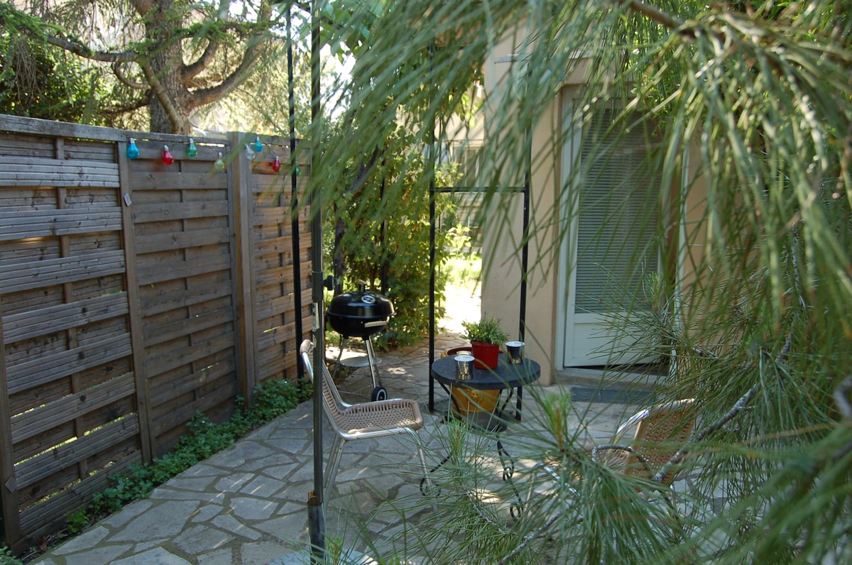 Agréable et lumineux studio en rez de jardin, situé à proximité du centre ville. Pouvant accueillir trois personnes, ce logement est composé de son entrée privative, d'une chambre, d'une salle de bain et d'une pièce de vie avec couchage d'appoint type BZ. Il est équipé de tout le confort nécessaire; climatisation, lave vaisselle, lave linge, TV.... A l'extérieur, vous pourrez profiter d'un jardin privatif avec terrasse, d'un barbecue, table de ping-pong et bains de soleil. Parking sécurisé.