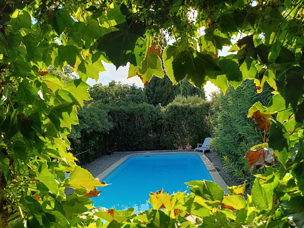 Vous serez sous le charme de ce logement décoré avec soin situé sur notre propriété et totalement indépendant de notre maison principale avec accès direct piscine, jardin et terrasse indépendante. Vous serez les uniques voyageurs pendant votre séjour. Vous serez accueillis dans un total confort, de votre lit queen size vous pourrez admirer le lever du soleil sur la piscine et le jardin fleuri. Entre les oliviers et les cerisiers, vous pourrez choisir votre coin d'ombre pour la sieste !