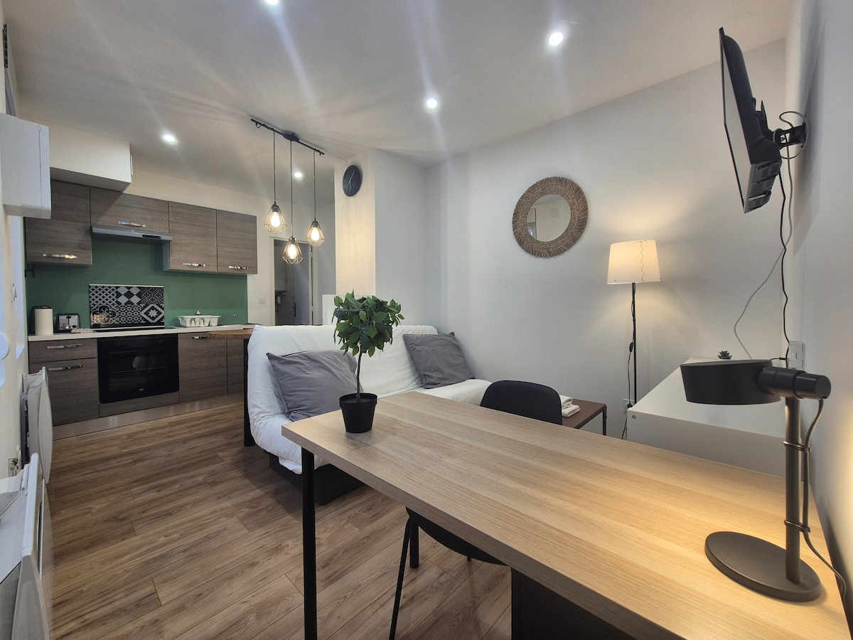 Set down your bags in this large, chic, high-end studio apartment with all the comforts, completely renovated by an architect, in the heart of Reims. Everything is within walking distance: the central train station, Place d'Erlon, Boulingrin, restaurants, and shops are just a few meters away. A rare location and an elegant, comfortable setting for a carefree stay. ⚠️ Bicycles are not allowed in the apartment.