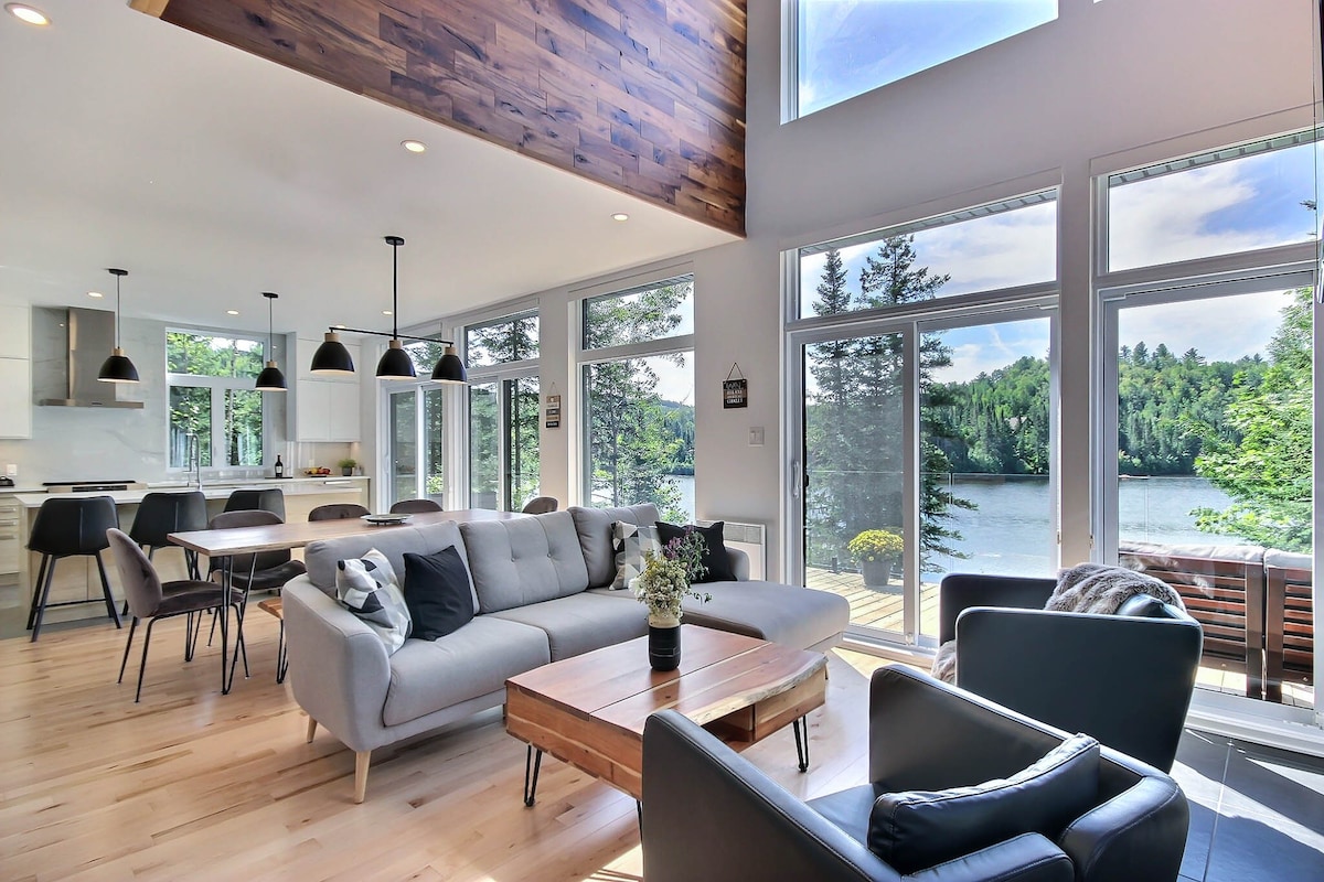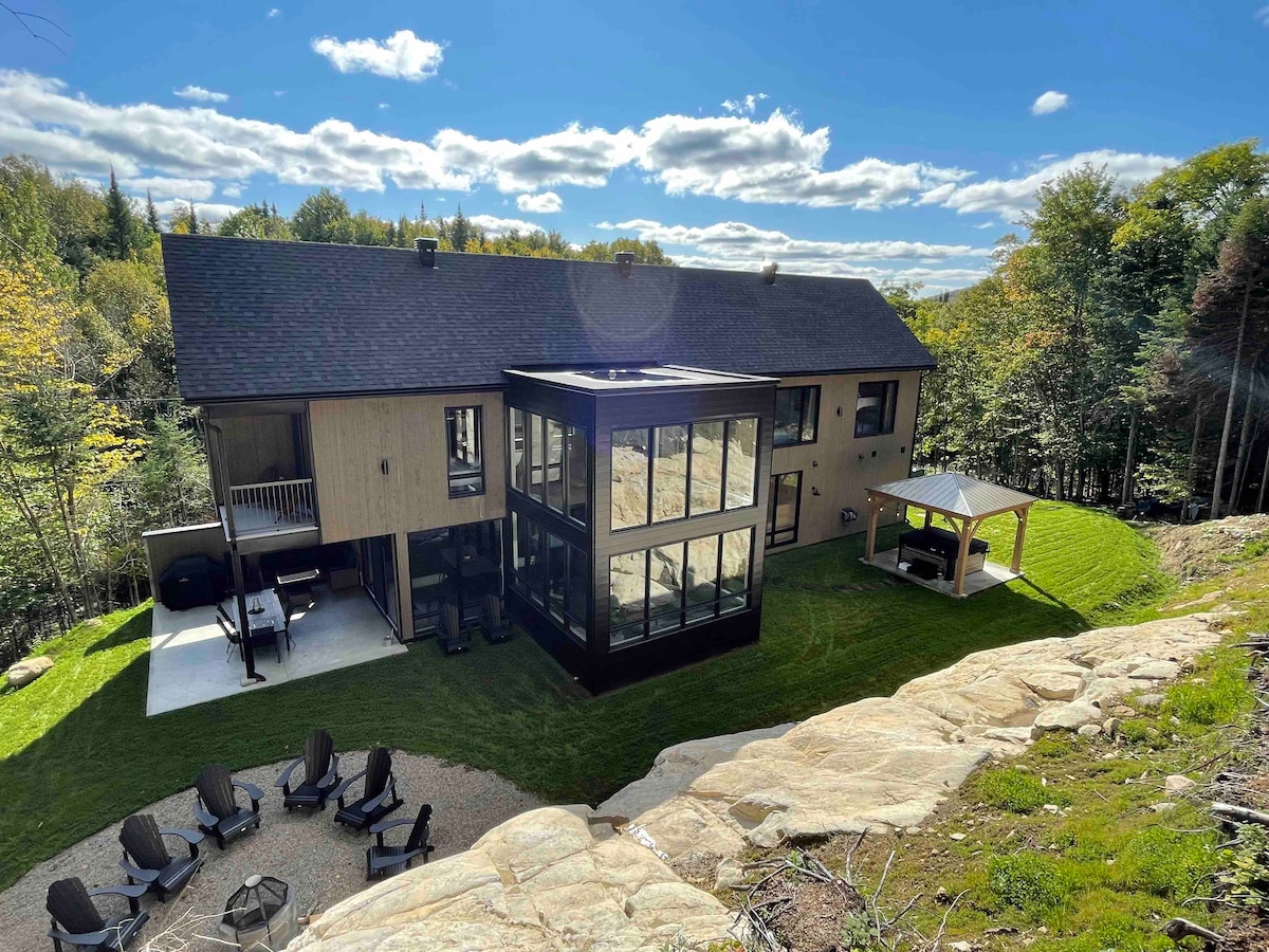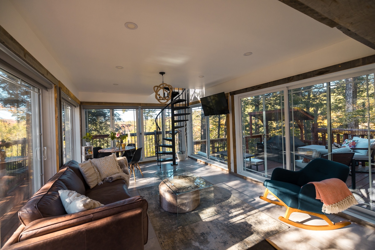 Contact us for our ongoing Promotion! Secluded Architect Glass Cabin perched for breathtaking Mont-Tremblant mountains views! Klint Tremblant (Cliff in Danish) is the unique design so you can retreat to comfort and luxury. It is a majestically glazed architectural space combining natural simplicity & contemporary luxury, 10 min from village Mont-Tremblant & Panoramic terrace & Private Hot tub In Laurentian. Designed by Canadian famous Designer in shared domain of 1200 Acres!