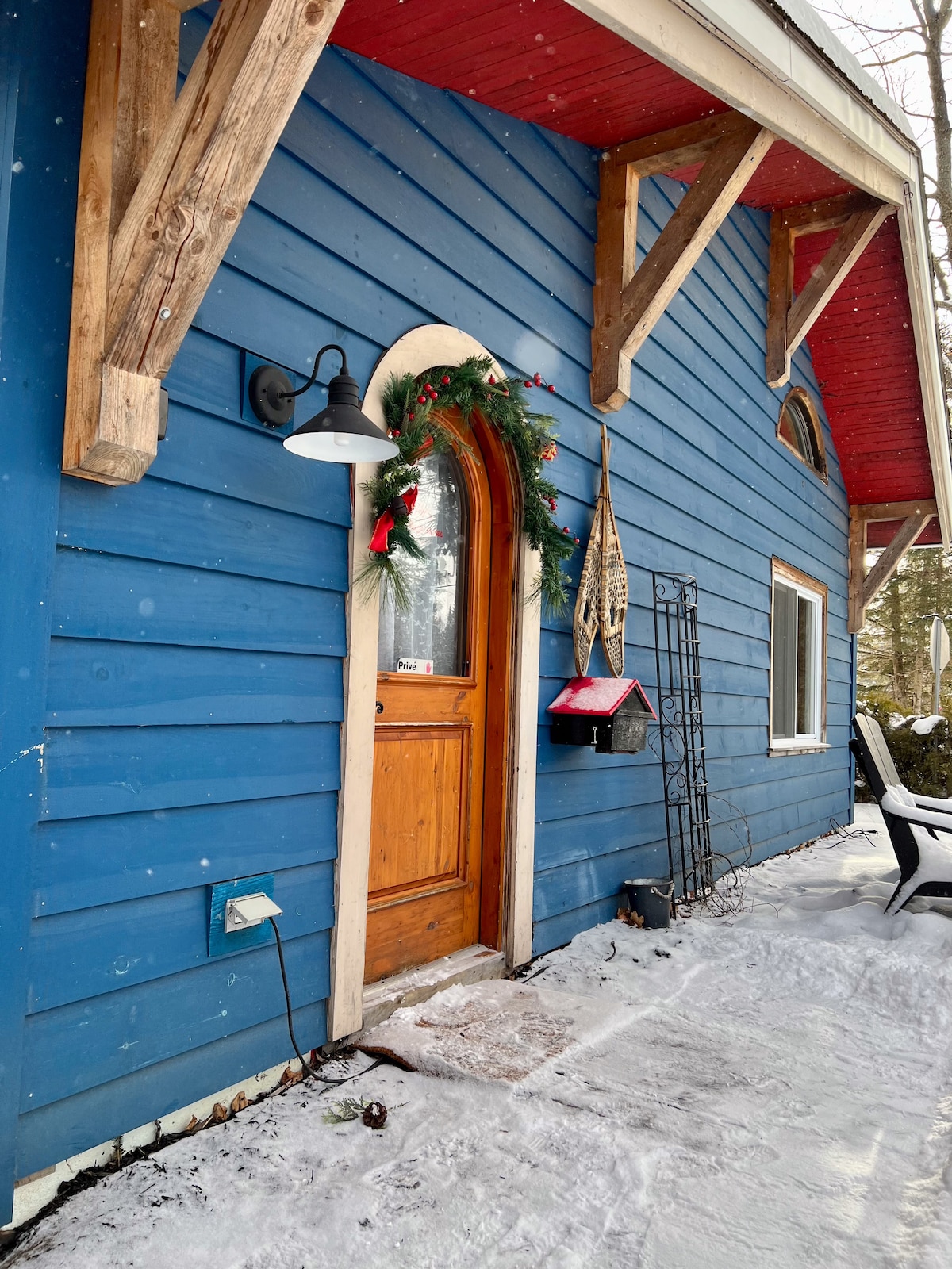 This forest chalet is an energy-efficient house on the private 10 acres hillside where the views are simply stunning. The architecture of the house is one of a kind with its exposed solid wood timber structure. Surrounded by the majestic beauty of the forest which gives you access to breathtaking ski slopes and splendid hiking trails only a few steps away. Enjoy ski at St. Sauveur and Mont-Tremblant and the chalet! ****Each guest must read additional rules before booking. ***