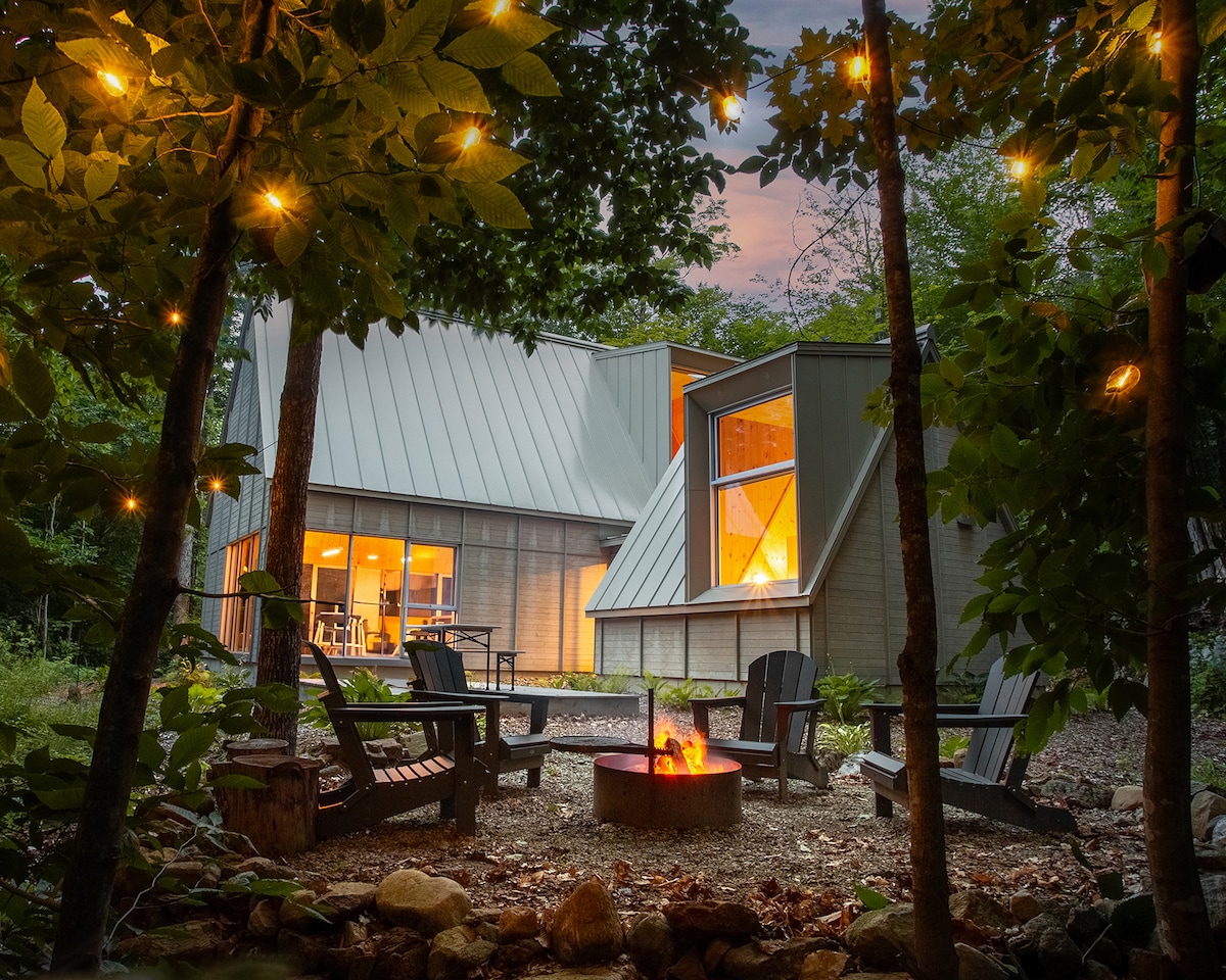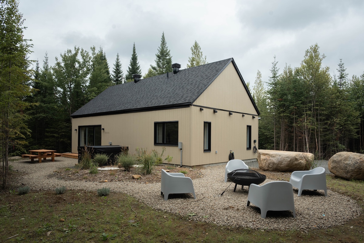 This forest chalet is an energy-efficient house on the private 10 acres hillside where the views are simply stunning. The architecture of the house is one of a kind with its exposed solid wood timber structure. Surrounded by the majestic beauty of the forest which gives you access to breathtaking ski slopes and splendid hiking trails only a few steps away. Enjoy ski at St. Sauveur and Mont-Tremblant and the chalet! ****Each guest must read additional rules before booking. ***