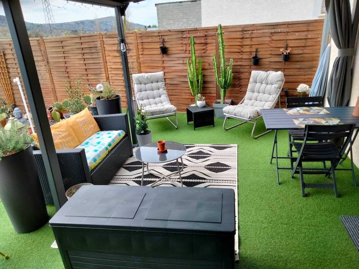 Bienvenue Chez Lulu🌸, En Ardèche🍃 🔑 FLEXIBLE A Moins de 8 min D'Aubenas et de Vogüe , Ce Grand Studio est Très bien situé & proche des sites & Villages classés, Ce grand studio AVEC VERANDA, Côté Jardin Accueille 2 personnes dans un cadre floral & paisible- Idéal pour un séjour Zen , il offre tout un confort,SDB, cuisine fonctionnelle, 1 lit 2 places, et un petit salon dans une véranda entourée de Nature Étant dans la région depuis 20 ans, vous conseillez, sera un plaisir🌸 Lulu 🌳