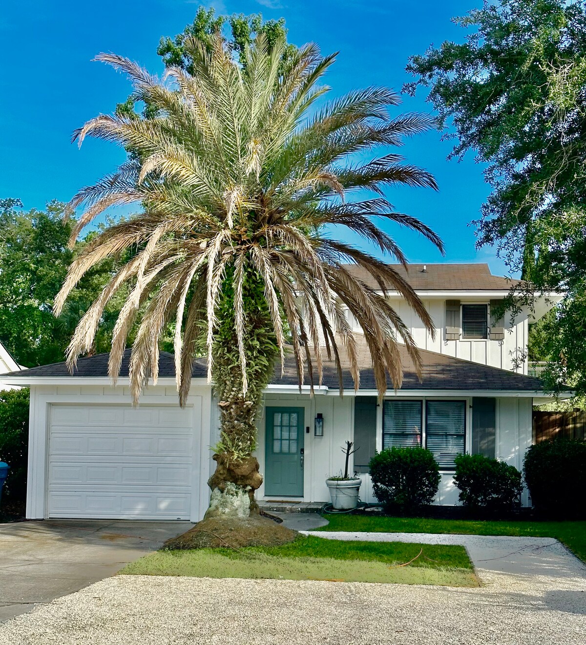 Actually minute walk to beach! 3 bedroom 2.5 bath -Beautiful fenced in back yard with a patio area covered ,with grill, Beach kart and towels chairs included! Located in the heart of popular beach community Restaurants shops markets and more! Block to beach access and minute from Village. Guest favorite on South end . Great king beds and Smart tvs in bedrooms Fully stocked kitchen. Great outdoor space private yard . Beach Restaurants Markets shopping in Popular Beach Community !