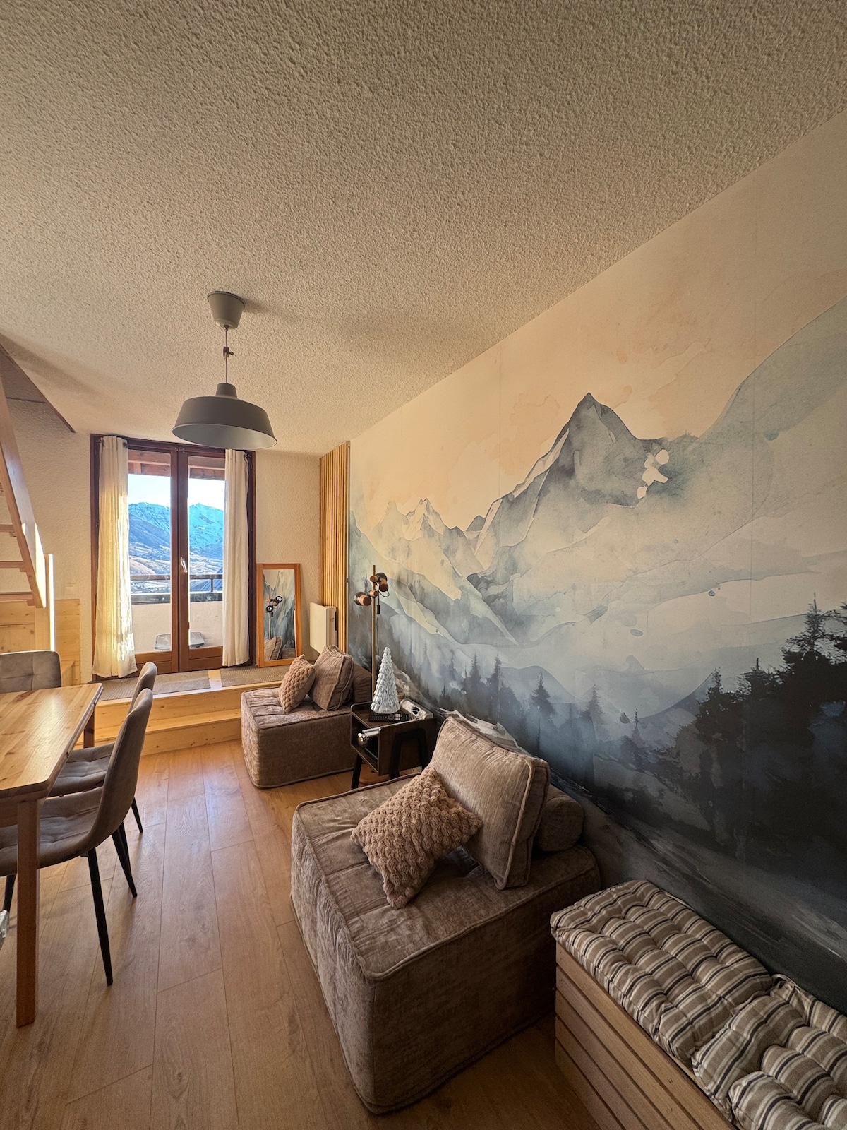 Book with You Ski Immobilier and benefit from our affordable packages: accommodation + ski passes. Request your personalized quote (offer valid depending on the season). Welcome to this superb luxury apartment HM204, nestled in the heart of the Le Hameau du Moulin residence. From the moment you step inside, you're greeted by a warm atmosphere, where quality wood and tasteful decor create a perfect cocoon for your vacation in Saint-Sorlin-d'Arves.