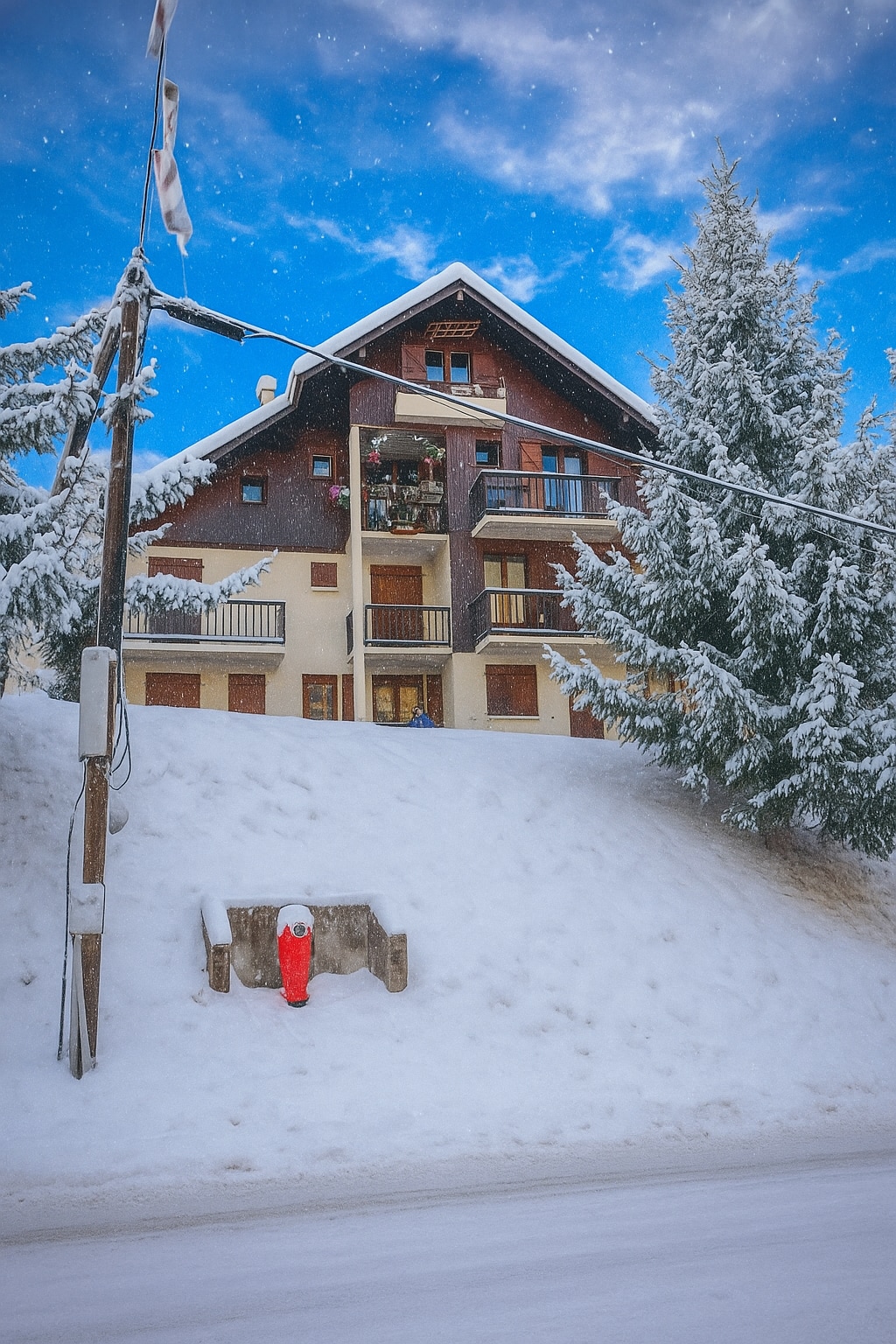 公寓位于雪道下方