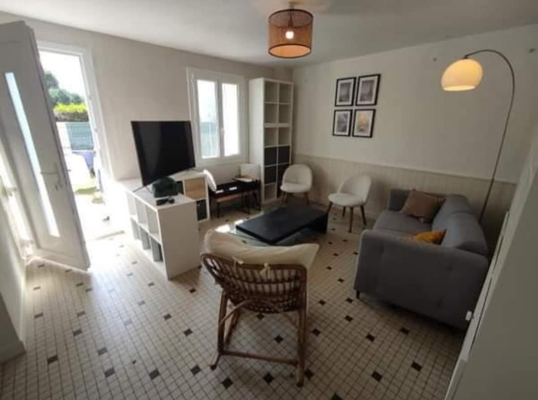 Joli 2 pièces avec sa terrasse sur grand jardin sans vis à vis, plage au bout de l’avenue Chambre avec lit double, wc, salle d’eau et pièce de vie (canapé-lit) coin cuisine (air fryer, micro onde, tassimo, frigo, plaque de cuisson) télévision/wifi. parking fermée (portail électrique) Supérette à 100m ou Super U à 900m. vélos à dispositions 10€/séj pour vous balader en bord de plage. Draps et serviettes de bain inclus. Pour les fumeurs, c est en terrasse svp :-) merci.