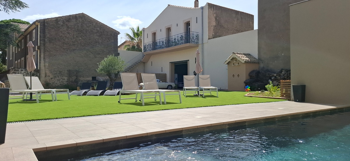 Lovée en plein centre du village de Montblanc, au cœur des vignes héraultaises et baigné par le soleil… Entre Beziers et Pézenas, à quelques kilomètres des plus belles plages occitanes ( Marseillan, Cap d’agde, Vias, Portiragnes, Mèze…) Venez découvrir notre demeure ADULT ONLY composée de 5 gîtes de charme classé 4 étoiles pour couples, dans une ancienne demeure viticole au calme, avec espace piscine intimiste et un vaste parc aux essences méditerranéennes qui vous assurera un séjour reposant.