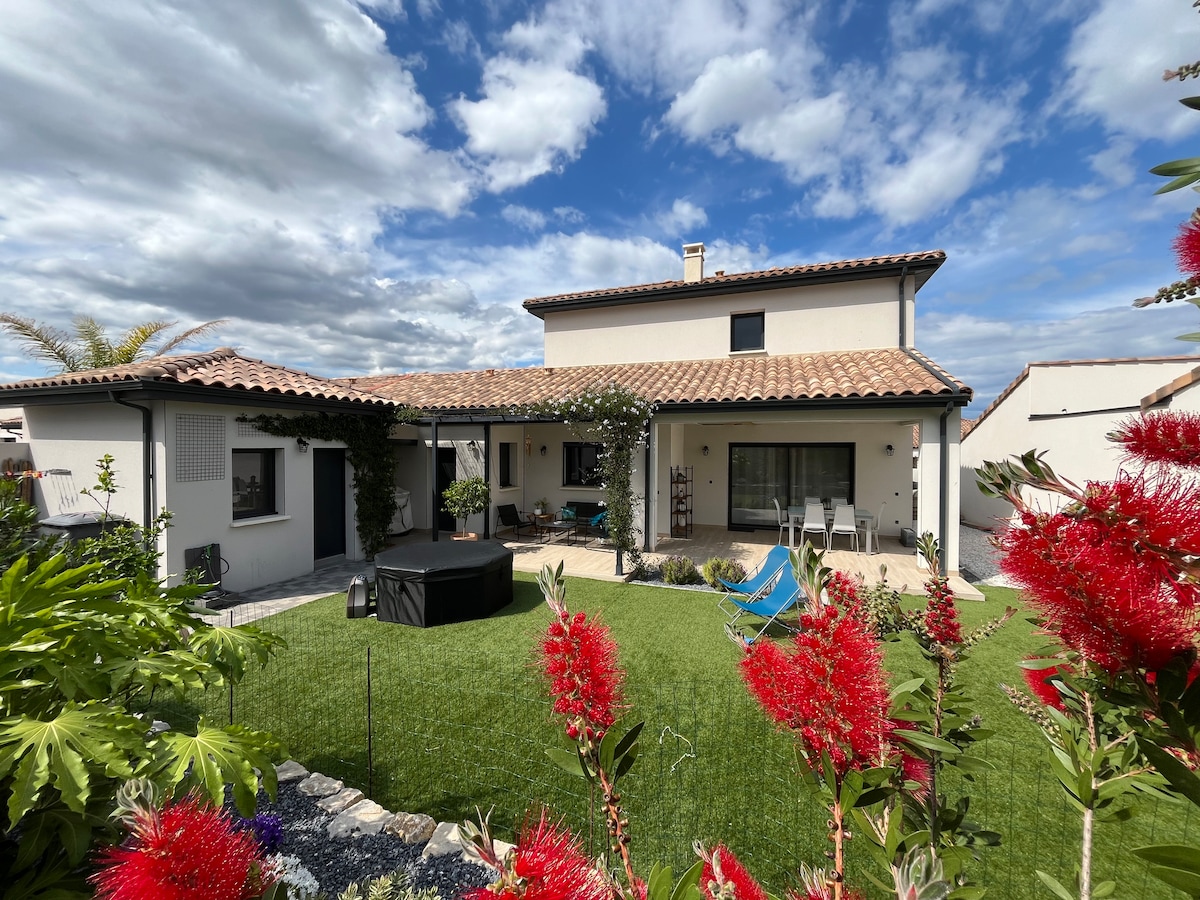 L'agence MyHero conciergerie vous présente la villa Flora, une sublime vigneronne rénovée au charme fou avec une cour extérieur privative équipée d'une piscine privée chauffée pour venir vous relaxer après une longue journée. Cette maison ne laisse indifférent personne venez voyager, venez vous reposer dans cette sublime maison décorée avec goût au coeur du charmant village de Saint Thibery à 15 minutes des premières plages.